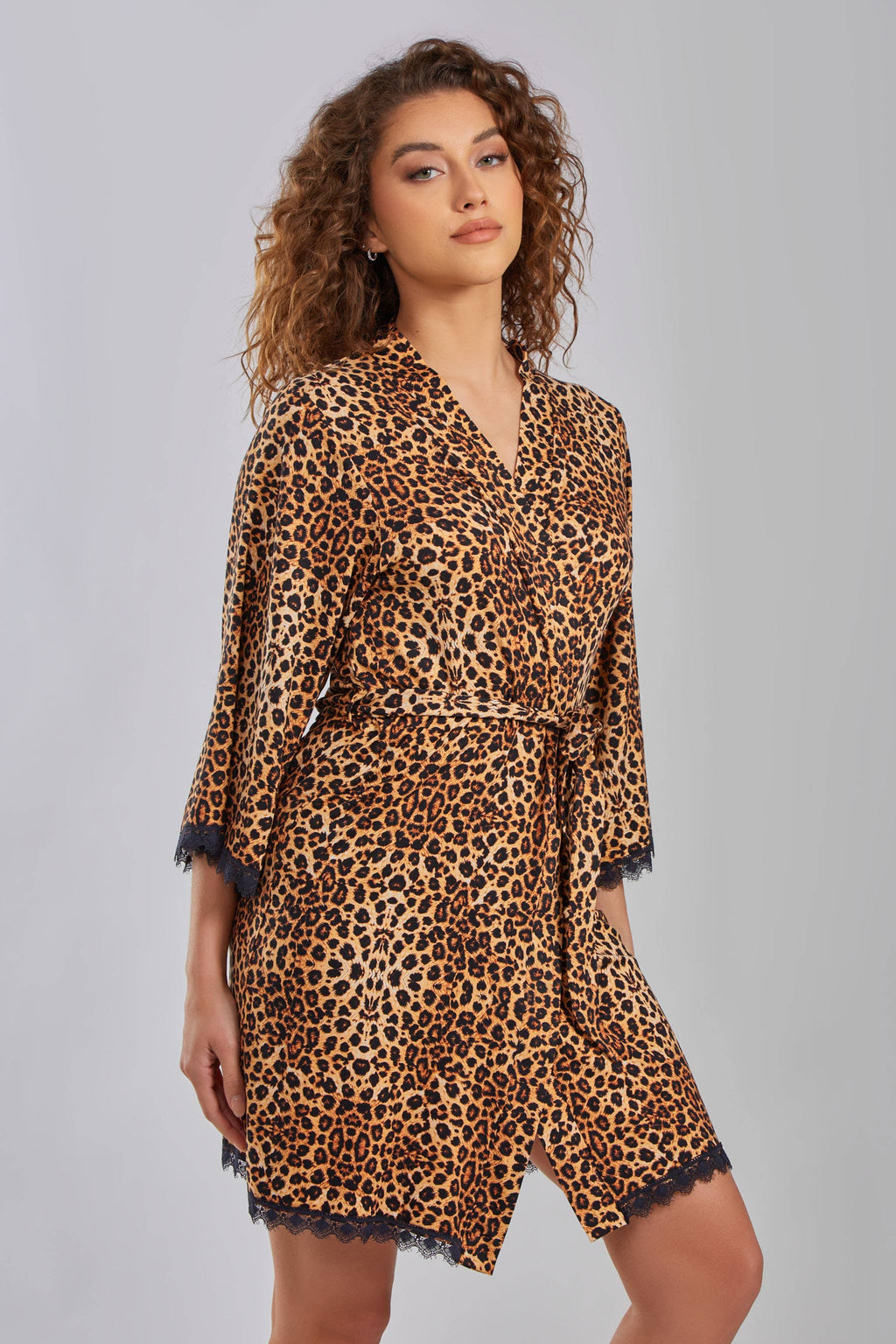 Keisha Leopard Robe Trimmed in Lace